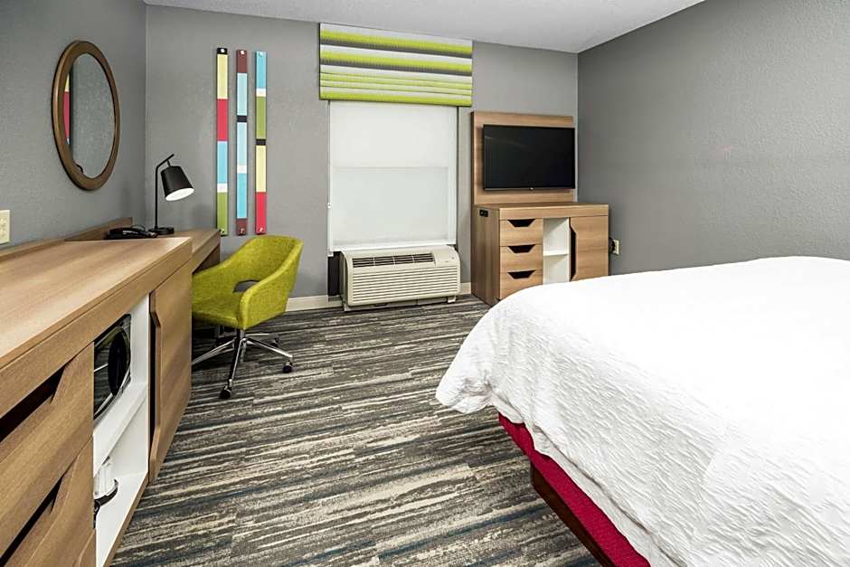 Microwave, refrigerator, sofa bed, desk, 32-inch TV, free WiFi Relax in this king room with a clean and fresh Hampton bed®. Sink into the sofa bed and watch movies on the 32-inch HDTV. Catch up with work at the large desk. Surf the web with free WiFi. Refresh your senses in the bathroom, complete with shower and plush towels. Enjoy the convenience of having a microwave, refrigerator and coffeemaker in the room.